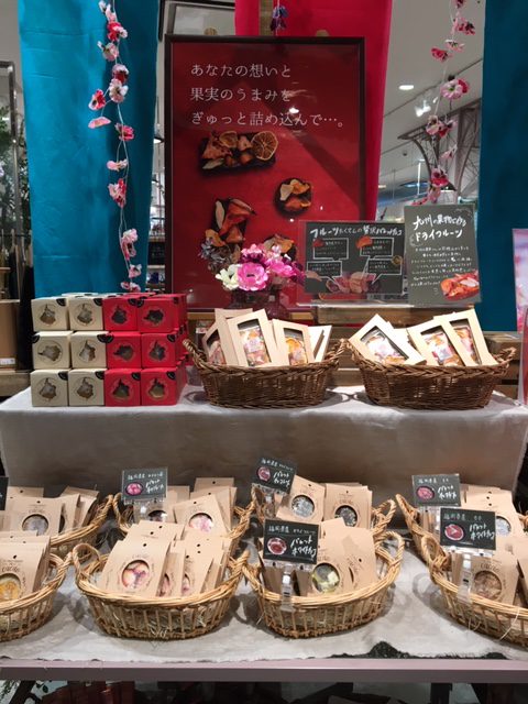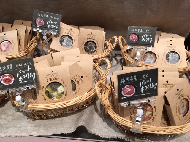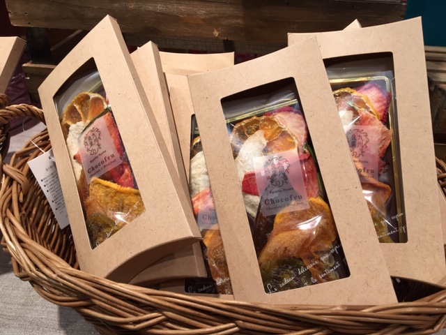 チョコレートのお菓子なのですが、上にあるのは全て九州で採れた果物をドライフルーツにしたものです。