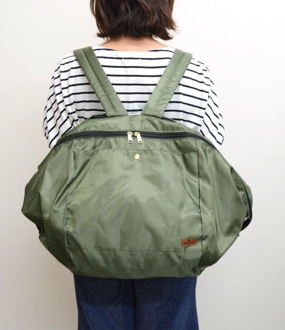 レジカゴにセットするだけで、精算後サッと「リュックスタイル」にすれば、