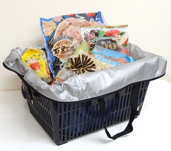 スーパーなどのレジカゴにぴったりサイズのエコバッグにもなる優れもの!