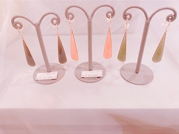 ピアス 2500+tax 春に使いたくなるようなカラーの揺れるピアスです。雫のようなシルエットが可愛いです! 他にもたくさんのイノブンオリジナルアクセサリーをご用意してますので皆様のご来店お待ちしております。