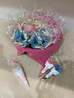 こちら手の平サイズのこんぺいとう。母の日にピッタリな花束風のパッケージがとても可愛いです😊