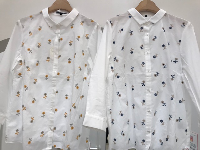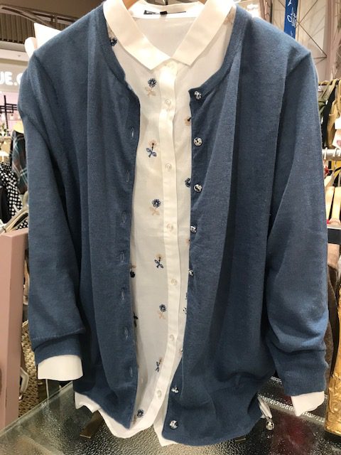人気の花柄刺繍のシャツはカーディガンとの相性もピッタリです◎