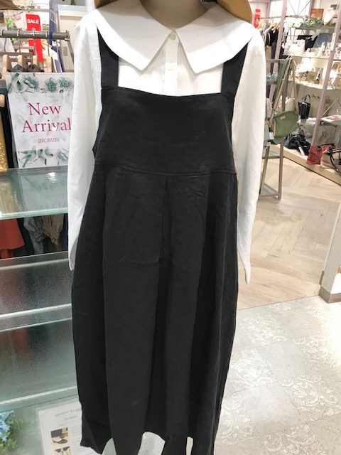パンツやスカートとあわせても可愛いのですがオススメはリネンジャンパースカートとのコーディネートです。
