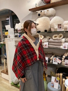 まずは、こちら、膝に掛けて頂いたり、肩から羽織って、ボタンで留めて頂いたり、色々使ってもらえる、あったか毛布の様な、膝掛けです。