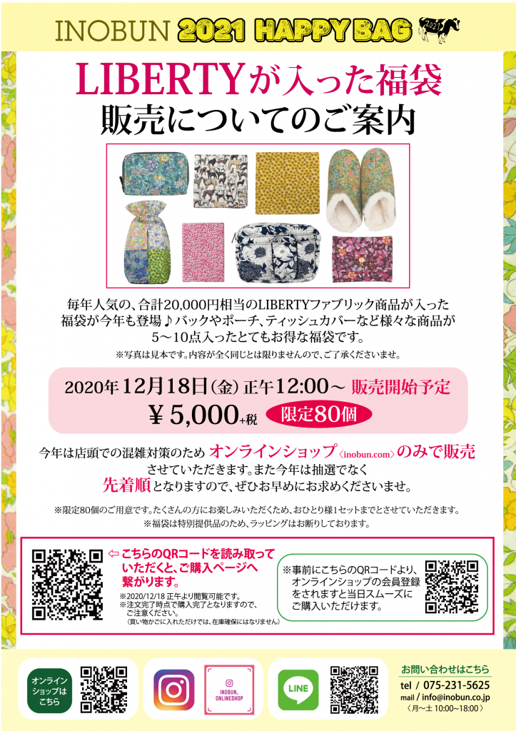 2021年リバティ福袋は、混雑を避けるためイノブンオンラインショップでの販売のみとさせていただきます。