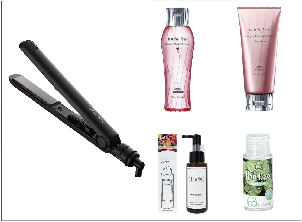 | サロニアのストレートヘアアイロンやナチュラルヘアオイル、ハンドジェルなどが入った福袋です。 |