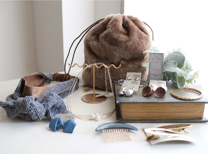 | トレンド感のあるアクセやヘアアイテムがたっぷり!巾着に入って大満足の福袋です。 |