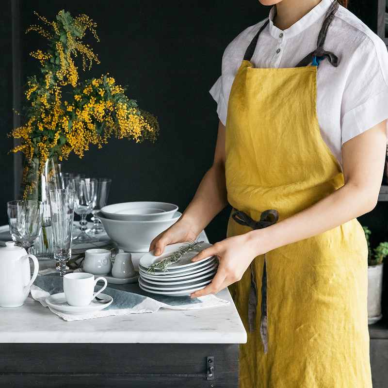 リネンは洗濯機でジャブジャブ洗えて、乾きやすい素材なので、毎日の家事で大活躍します。水通しされたウォッシュド加工のリネンなので、使い始めからふんわり柔らか。