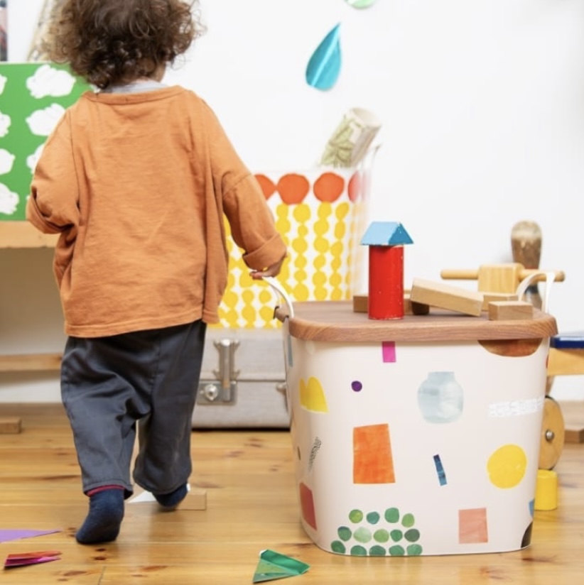 蓋の上で車で遊んだり、お絵かきや塗り絵