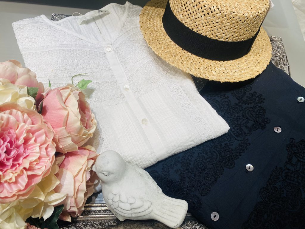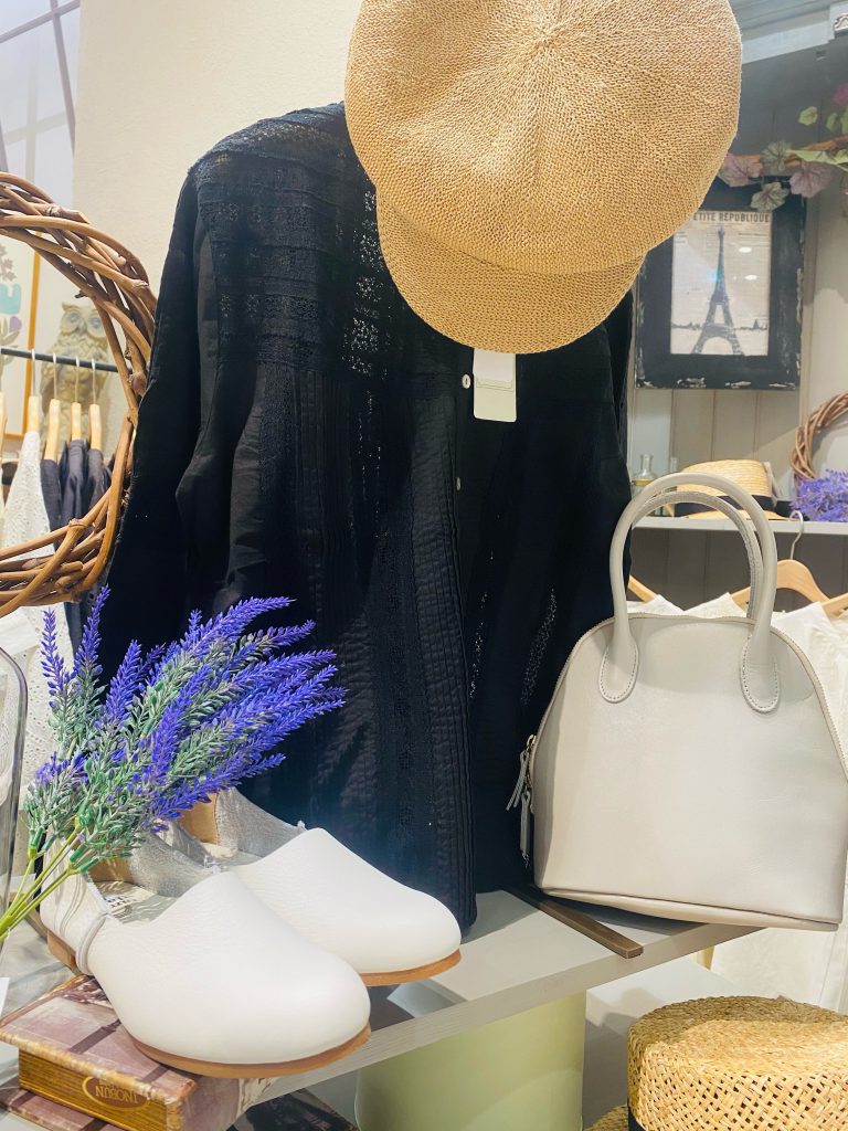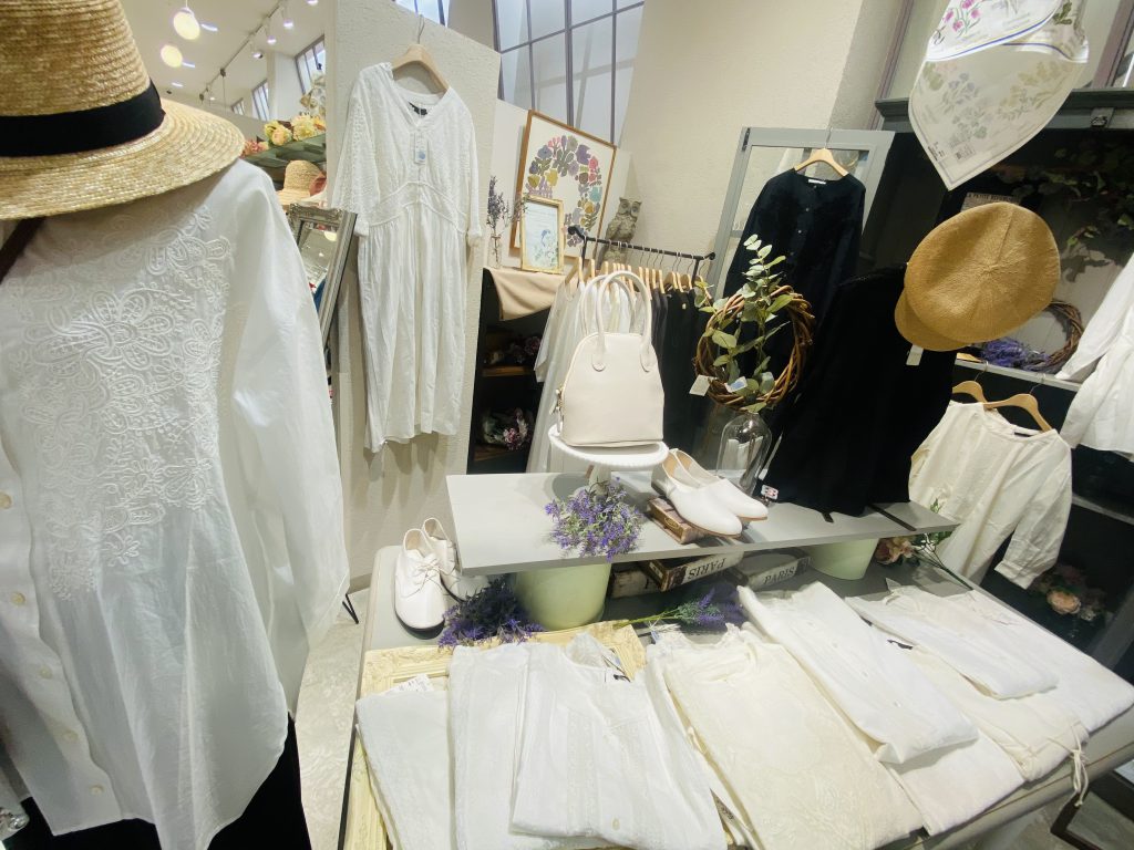 イノブン桂川店の店頭では白と黒のレースのお洋服を多数取り揃えております。