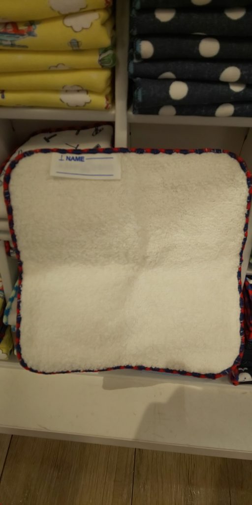 ハンカチの裏面には、名前が書けるネームタグが付いていて、とても便利です!