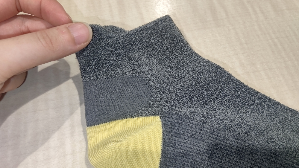足の底のクッションは衝撃緩和効果が従来のパイル編みのおよそ2倍、 強度は10倍なので足の負担を減らし、ほどよいフィット感が靴下と足のずれをなくし、 疲労を軽減させてくれます。
