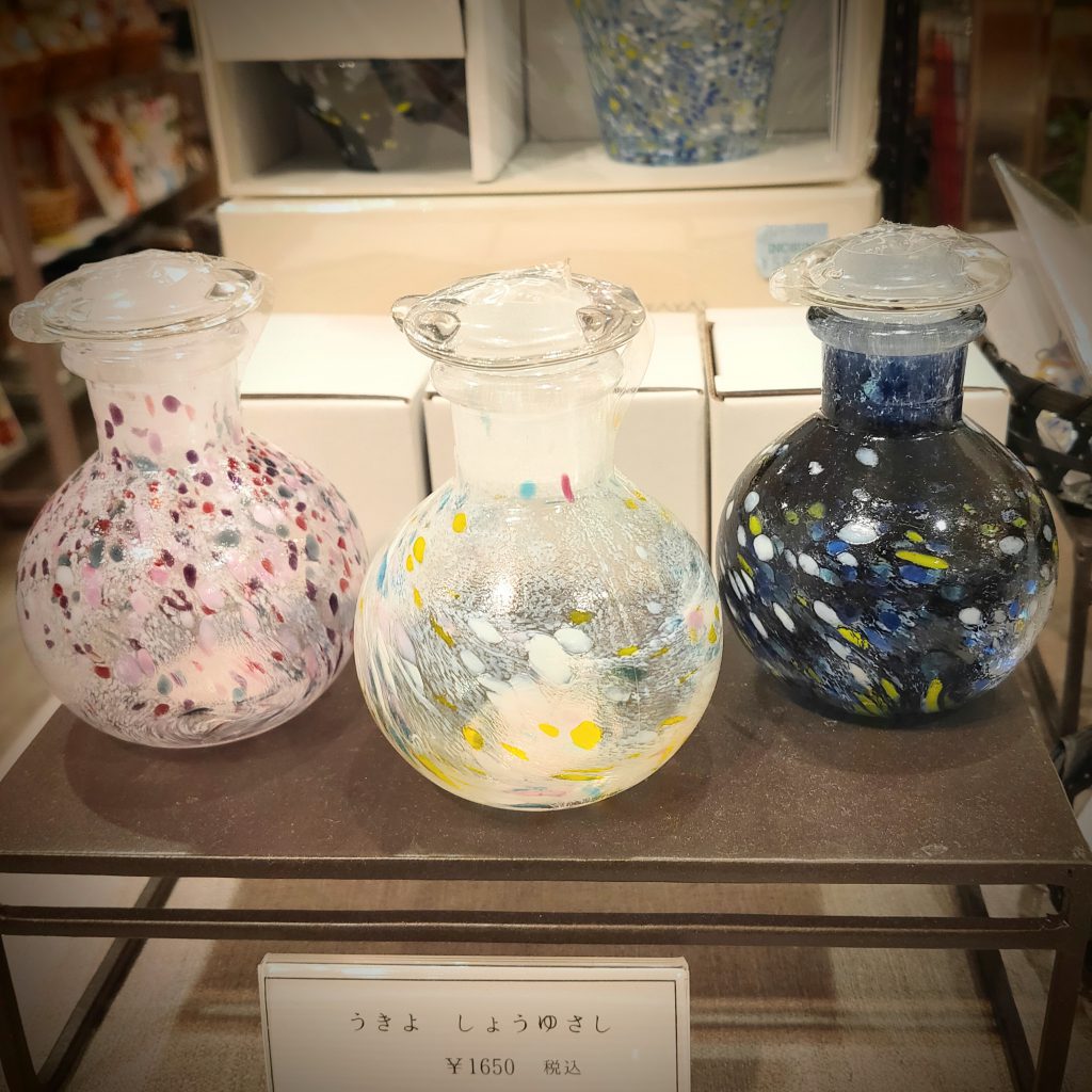 美しいガラスのしょうゆさしは、和にも洋にも使えそう。