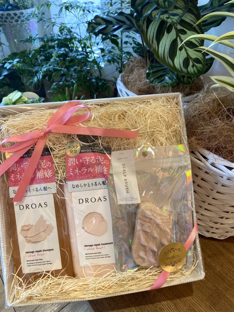 頭皮をブラッシングするマッサージブラシとのセットなどは、いかかでしょうか。