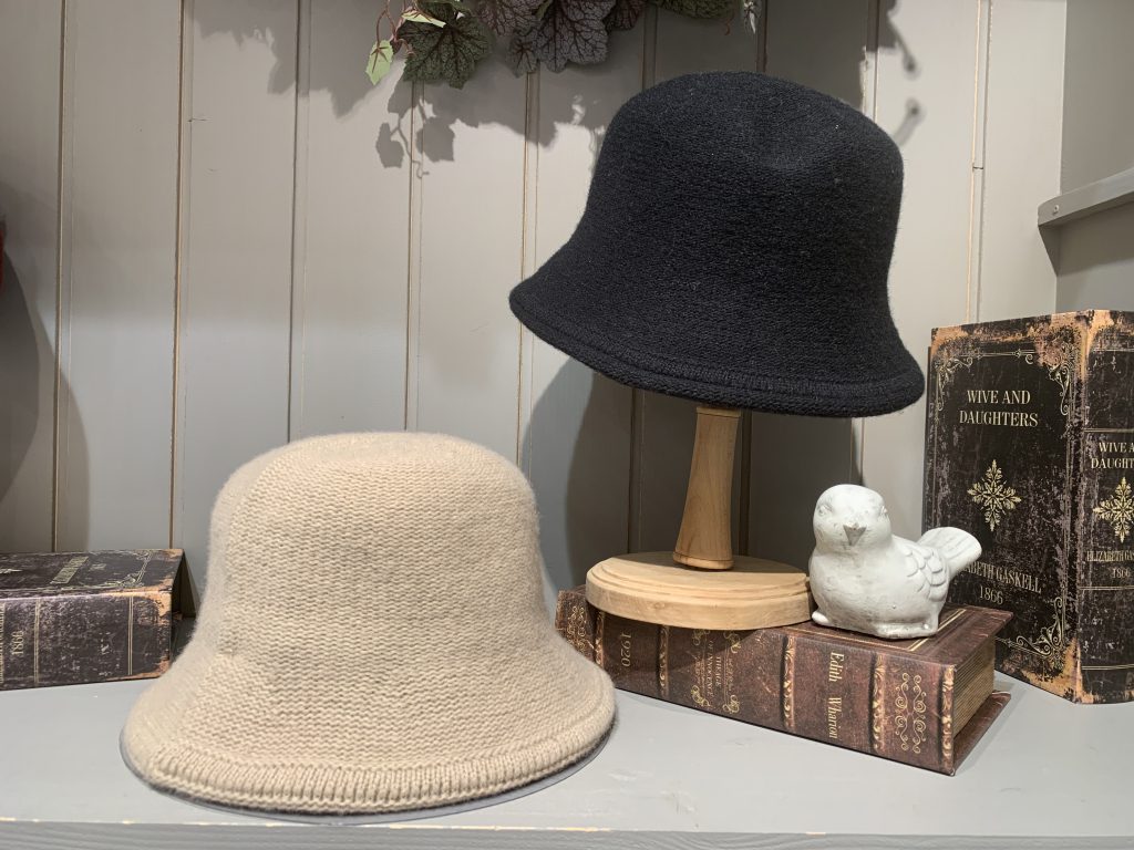 ナチュラルな雰囲気のニットバケットハット。 シンプルできれいなデザインと色味でどんなコーデにもよく合い様々なシーンで活用できます。前の3つのものより軽い印象です。