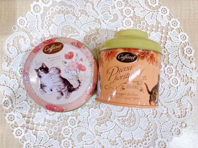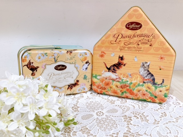 私のお勧めは 持ち手があって、色がかわいらしいねこのバスケット缶です!1枚目の左側の商品になります。