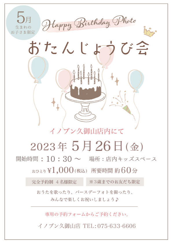 5月生まれのバースデーフォトイベントのお知らせ