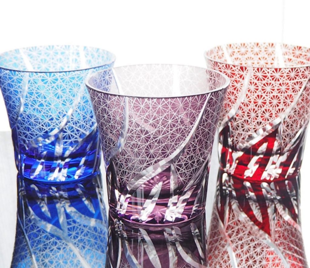 受け継がれたカットグラスの工法で、ひとつひとつ職人さんの手によって生み出される切子グラス。