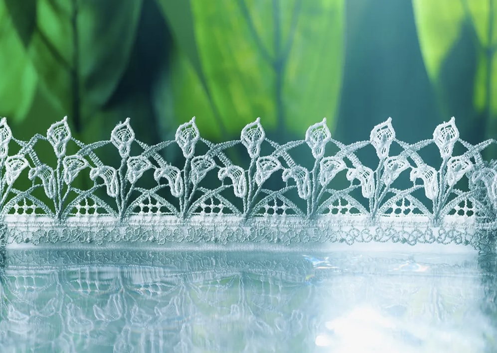 シンプルで凜とした佇まいが美しいカラーをモチーフにしたエレガントなレースがとても素敵です。広幅のレースの分サイズも少し大きくなっています。