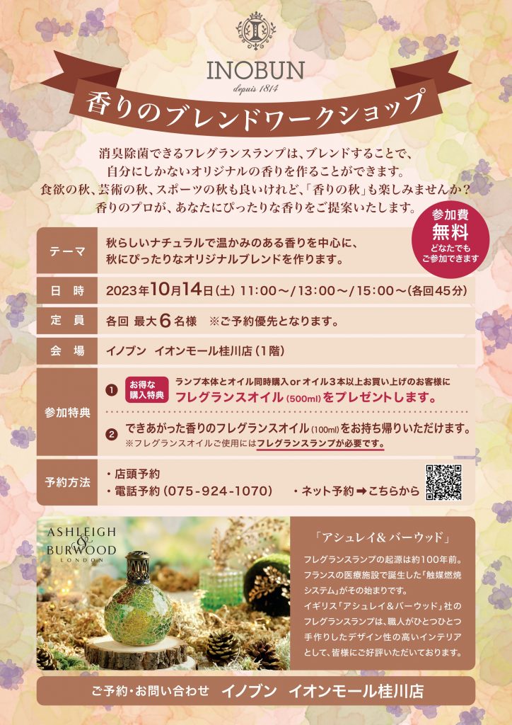 香りのプロが、香りについてのお話とあなたにピッタリの香りをブレンドしてくれる特別なワークショップが開催されます♪