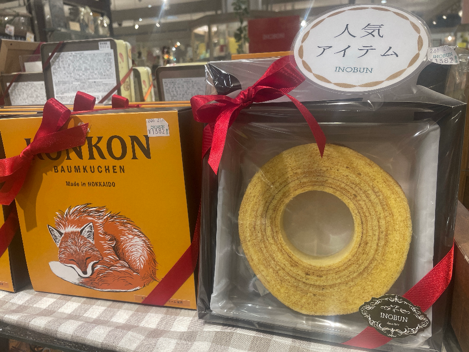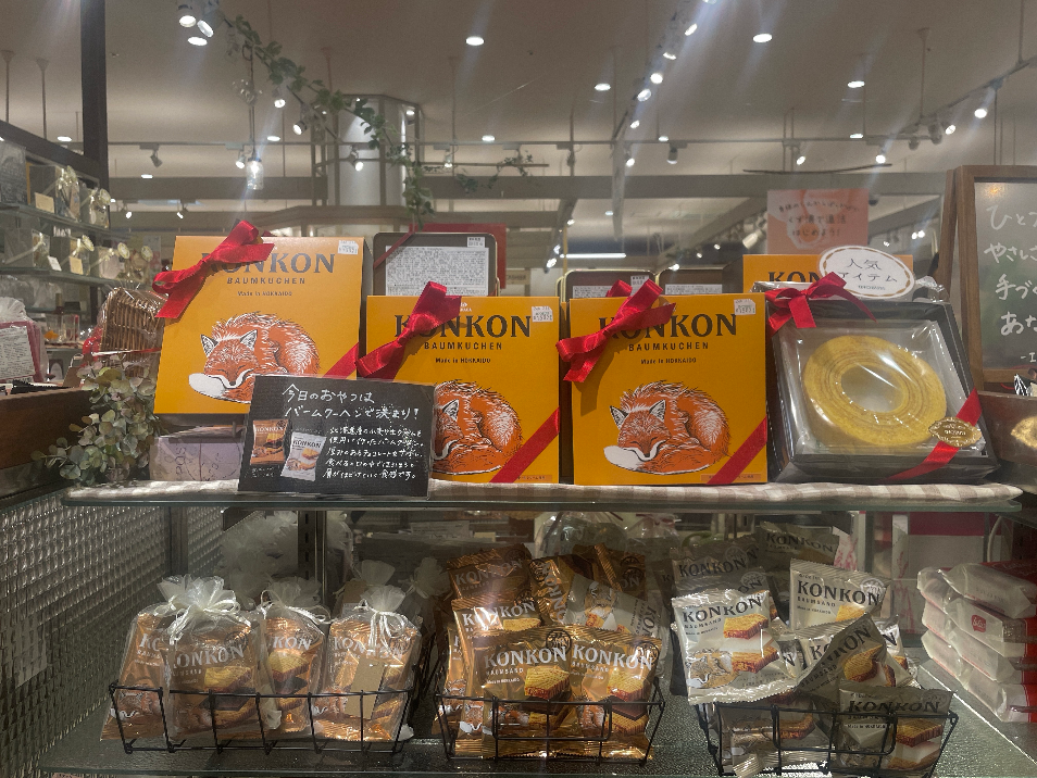 可愛らしいキツネのパッケージでバームクーヘンはお箱に入っているので贈り物にも♪