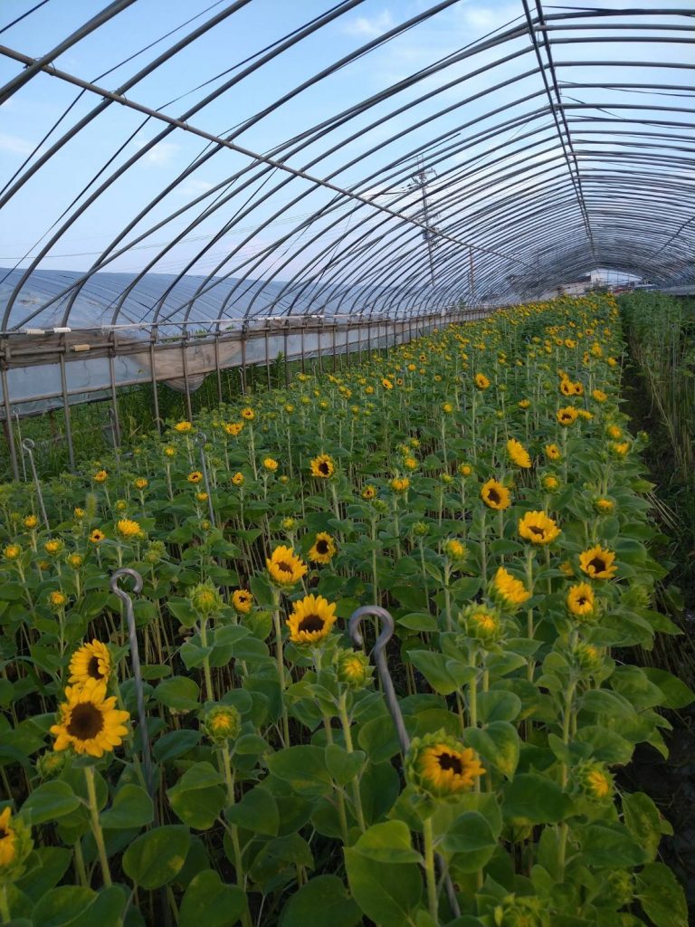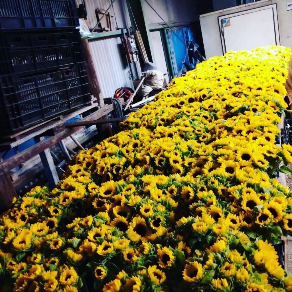 その日の早朝に出荷された新鮮なひまわりがショップに並びます