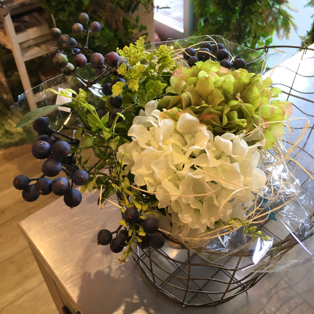 造花の紫陽花を家に沢山飾っていますが自分でアレンジしてブーケを作ったりしています