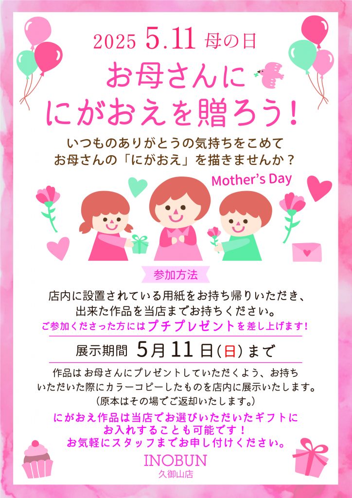 店頭設置のにがおえ用紙に、お母さんのにがおえを描いてお持ち頂いた方へプチプレゼントをご用意しております。