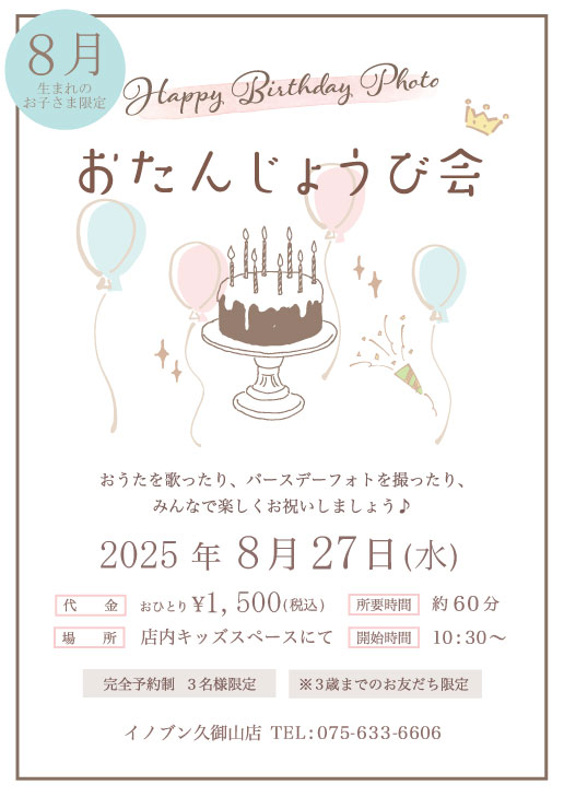近日中に、9月生まれのお子様のバースデーイベントの予約も開始しますので、