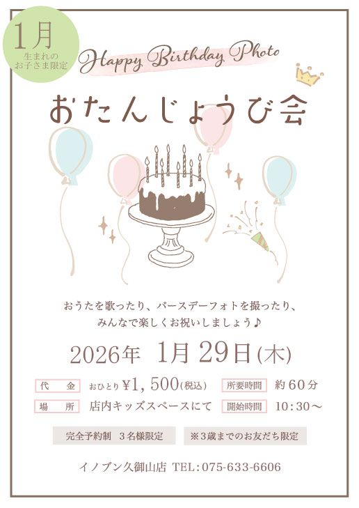 1月生まれのバースデーフォトイベントのお知らせ☆
