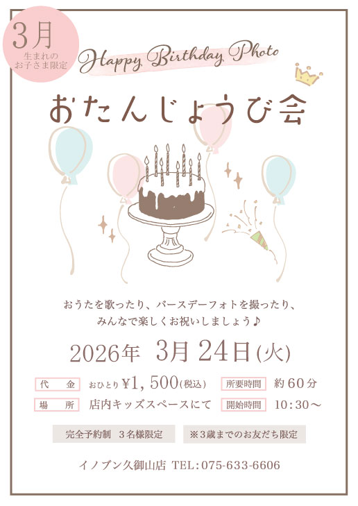 3月生まれのバースデーフォトイベントのお知らせ☆
