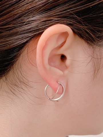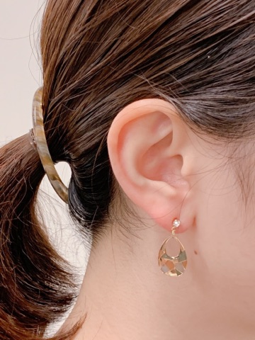 マットなシルバーとゴールドのイヤリングです。マット素材なので落ちついた印象になり今っぽくなります。