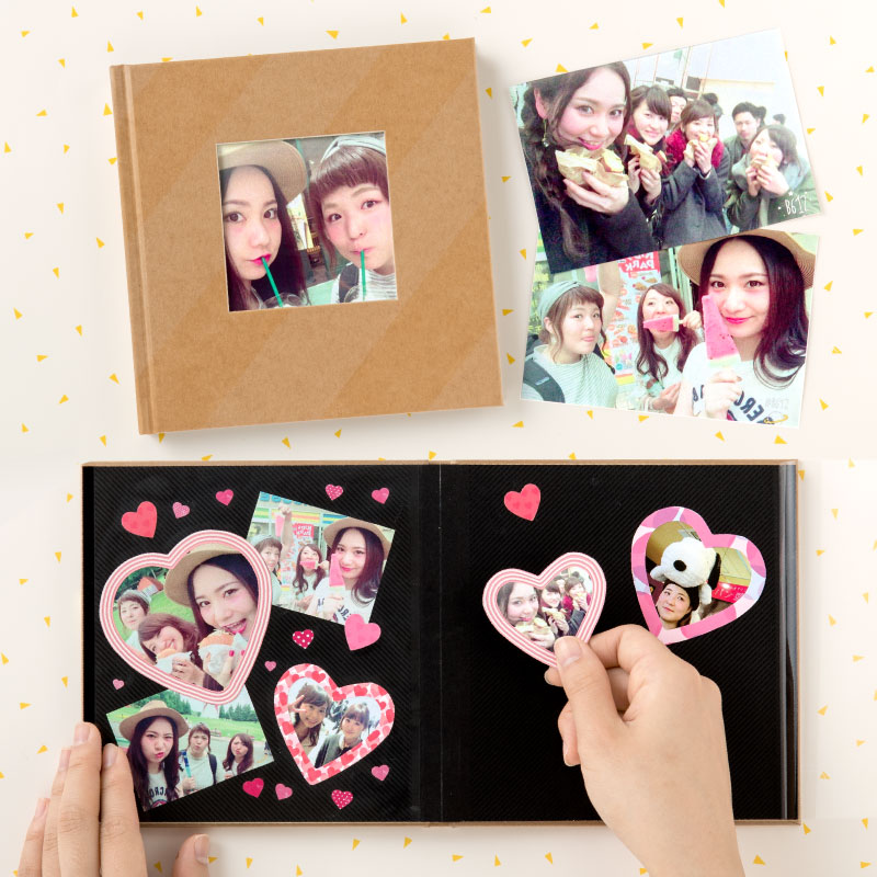 オリジナルの表紙が作れる窓開きタイプで8枚の黒台紙アルバムだから写真やデコレーションが映えます。