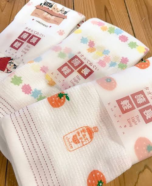 年齢や好みによってプレゼント用、キッチン用、お出かけ用など、用途別に豊富な柄の中から選ぶ楽しさもこのてぬぐいたおるの醍醐味です!