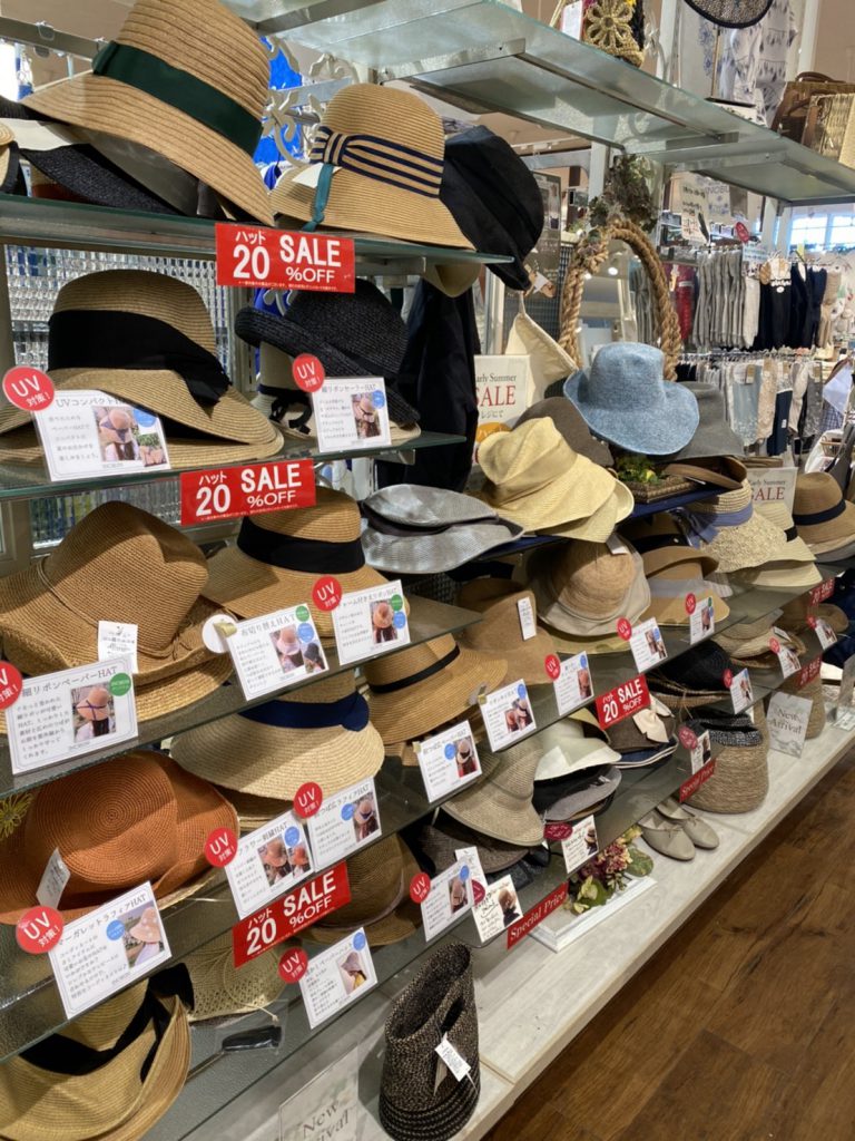 只今イノブン久御山店では今すぐ使える夏物のハット、かごバックが20%OFF!!