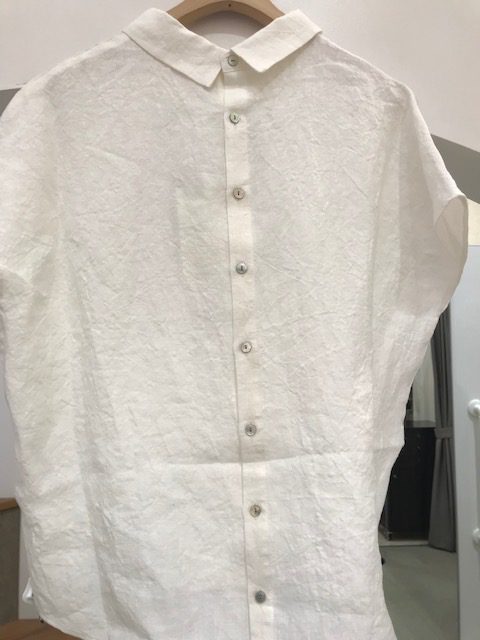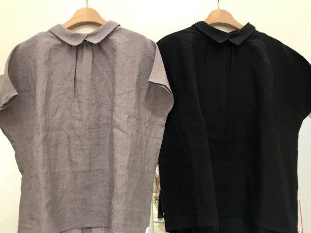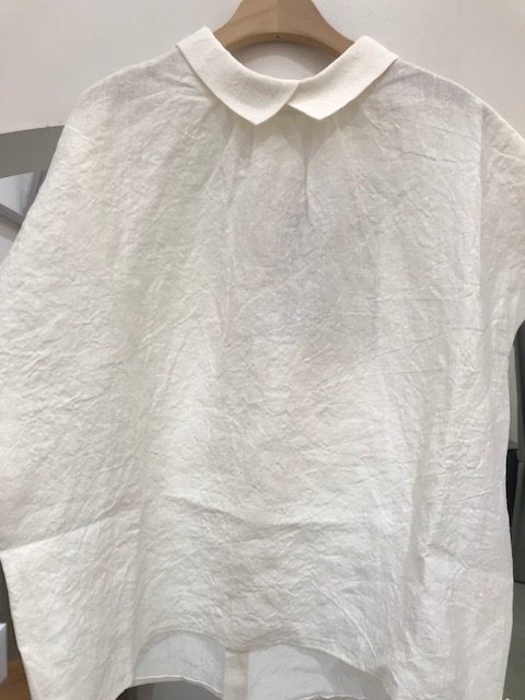 ナチュラルなシワ感が特徴の遠州灘リネンのチビ衿が可愛い日本製のブラウスです。