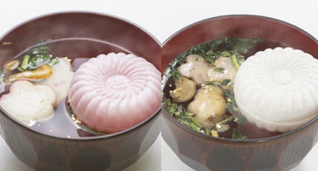 縁起の良い金箔、紅白、菊が揃った特別なおすましは