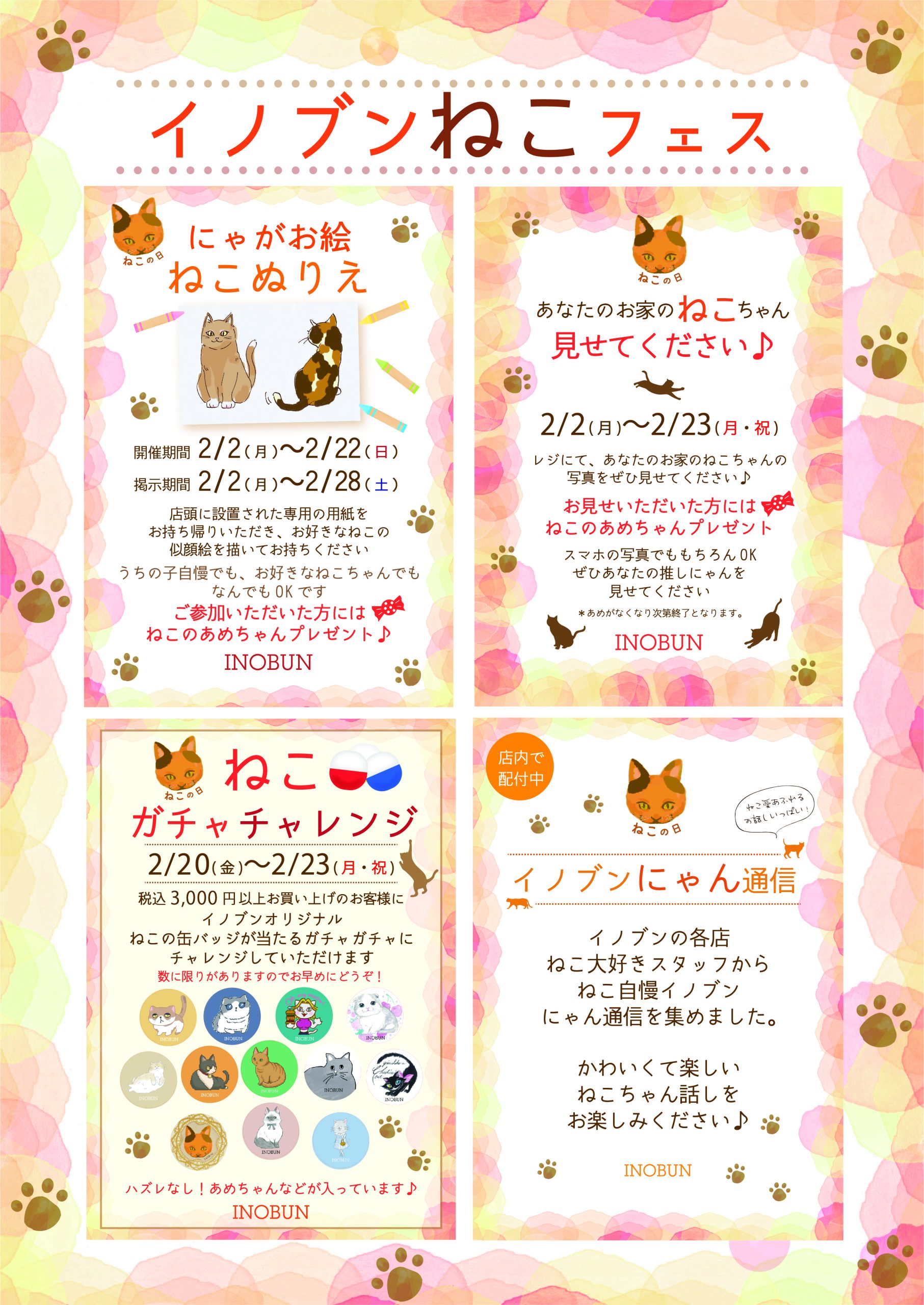 イノブン各店より、ねこ好きスタッフによる、ねこ自慢を集めたにゃん通信をお配りしております!