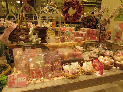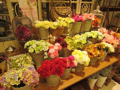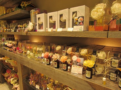 たくさんのアートフラワーやポプリ、香りの花たちが店頭を彩っています。