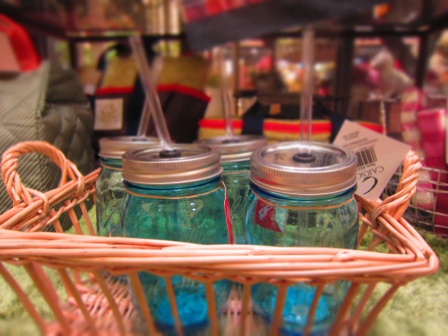 こちらはストロー付きのメイソンジャー。ガラス製です。