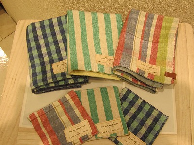 独特の柔らかな風合いと自然のぬくもりが宿っています。そんな生地でできたエプロンやランチョン、テーブルクロス、ポットマットは食卓を彩ってくれること間違いなしです。