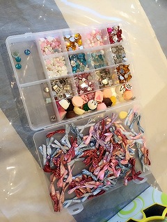 サングラスが決まったら、リボンやカラフルな飾りを選んで接着剤でつけます!
