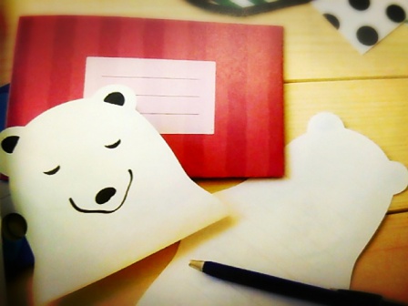 大きなシロクマが目をひきますね♪このレターセットのカードは二つ折りにするとシロクマの表情が変わるところがポイントです。