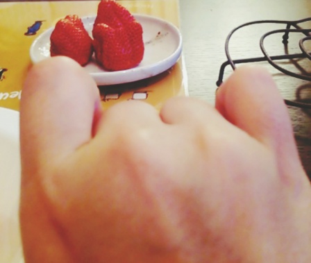 先日晩ごはんに食べたイチゴのかたちが、自分の拳のグーに似ていて笑いました(^o^)