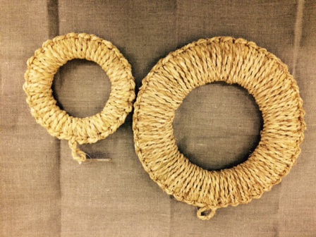 新潟県佐渡島のおじいちゃんおばあちゃんが、手足を使って編み上げるワラの釜敷き。