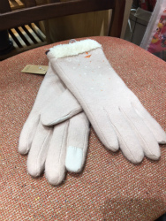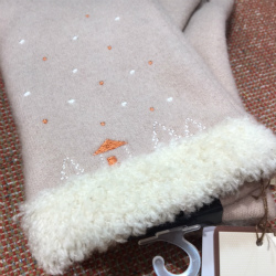 小さいおうちとモミの木の刺繍と、雪が積もっているように見える手首部分のボアが、冬らしいグローブです。