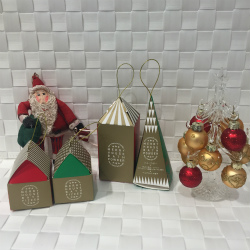動物たちのイラストがにぎやかなハウス型パッケージに入ったバスフィザーとバスパウダー。ひも付きなので、ツリーのオーナメントにもなります!