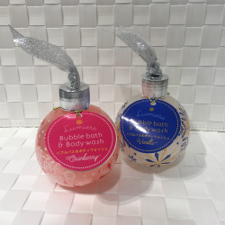 こちらはクリスマスのオーナメントをイメージした見た目もとってもかわいいバブルバスです!クランベリーの香りとバニラの香りです!