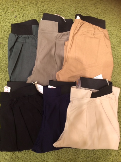 サイズは36(S)・38(M)・40(L)の3展開ですが、ウエストゴムなので幅広いサイズに対応しております。