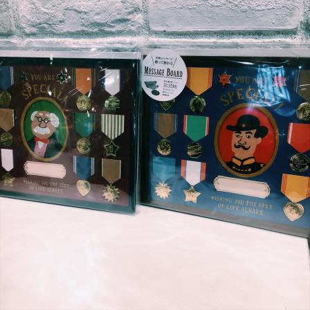シールタイプの勲章に、それぞれメッセージを書いてもらったら、あとはボードに貼付けるだけ!